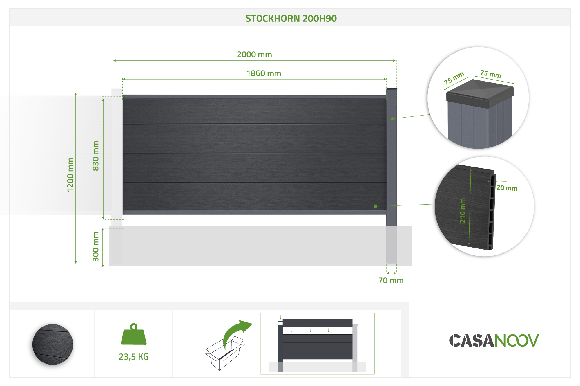 STOCKHORN 2m H.90cm Composiet Hekverlengingsset voor Betonmontage, Grijs